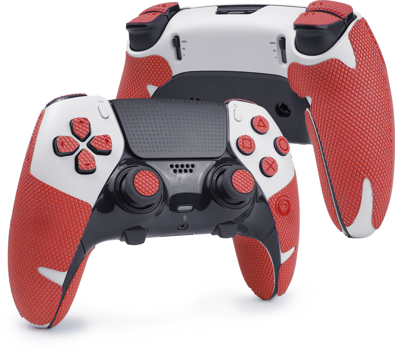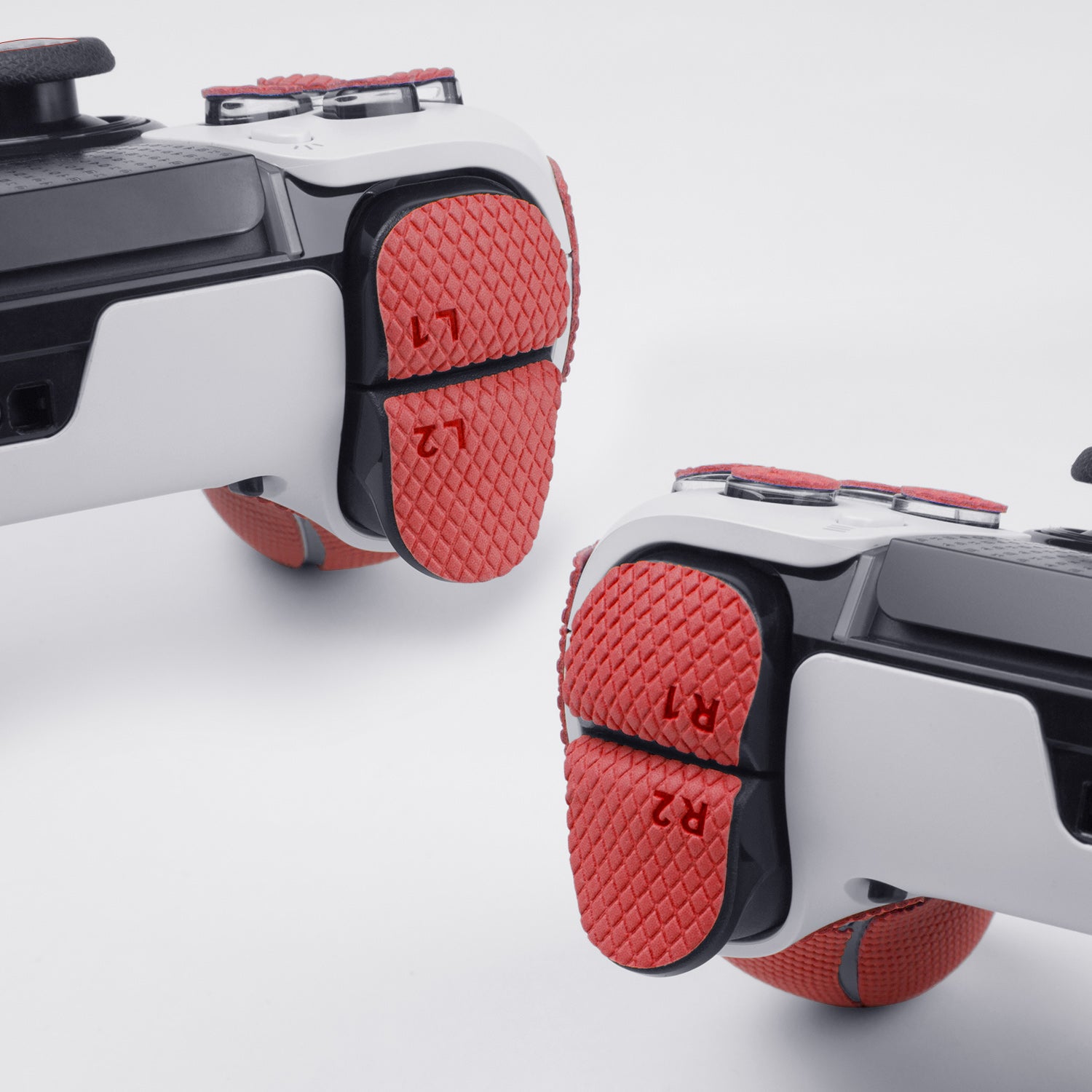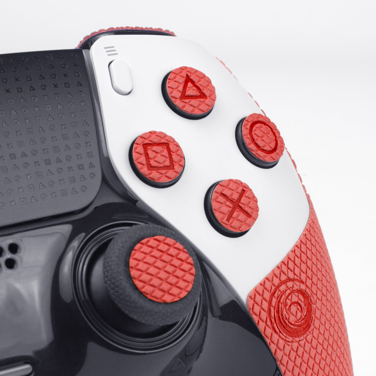 【 アクションボタン図形提示 】TALONGAMES PS5 コントローラーグリップ テープ アンチスリップテープ PlayStaion 5 DualSense 滑り止め グリップシール [ グリップ部分 + 十字キーパッド + ボタン+トリガー ] (PS5 DualSense 用, Pro version - Red)(TC16)
