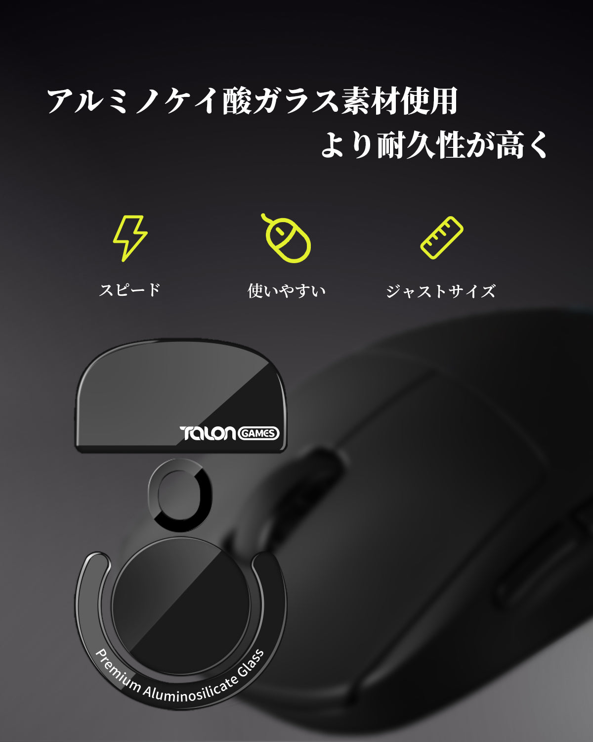 強化ガラス素材 TALONGAMES マウスソール Logicool G PRO X SUPERLIGHT ワイヤレス 用 ゲーミング マウス 交換用 ラウンドエッヂ加工 高耐久 超低摩擦 Super Smooth Glide ブラック ( センサー周りのソール付き ) 【 日本正規代理店保証品 】(TB31)