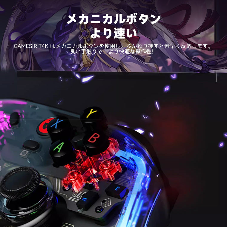 【送料無料】GameSir T4 Kaleid ワイヤレス T4K コントローラー ゲームパッド Nintendo Switch PC Windows Android 用 Bluetooth 有線 PC ゲームコントローラー 6軸ジャイロ/振動/ターボ機能付き ワイヤレス接続 コントローラー