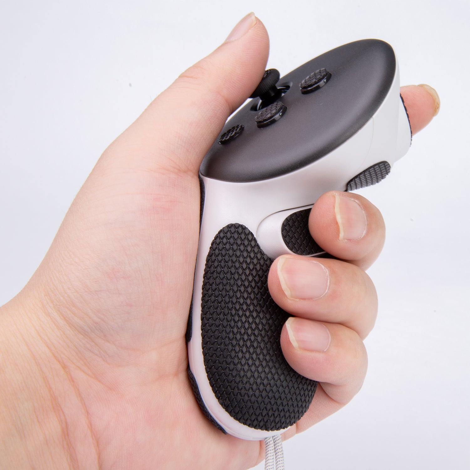 ・当社のMeta Quest 3コントローラースキンは、Meta Quest 3のコントローラー実体に基づき丁寧に開発しました。グリップ効果を最大化するため、手のひらから指まで接触の部分全部をカバーします。同時貼り付けた後にコントローラーの美しさを十分に考慮してデザインします。 |