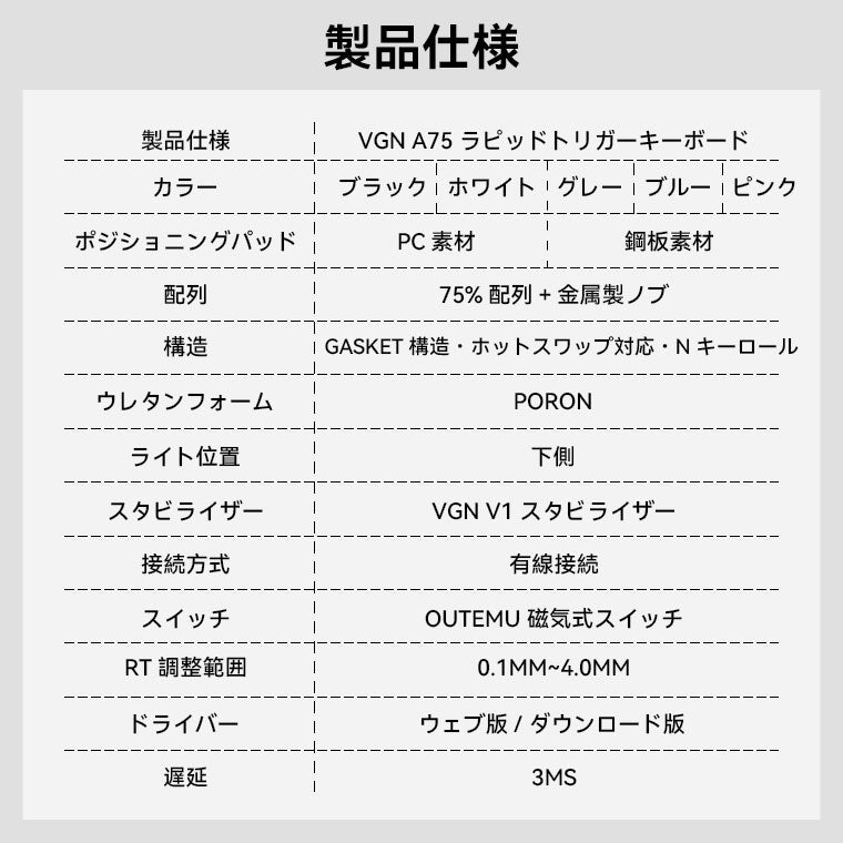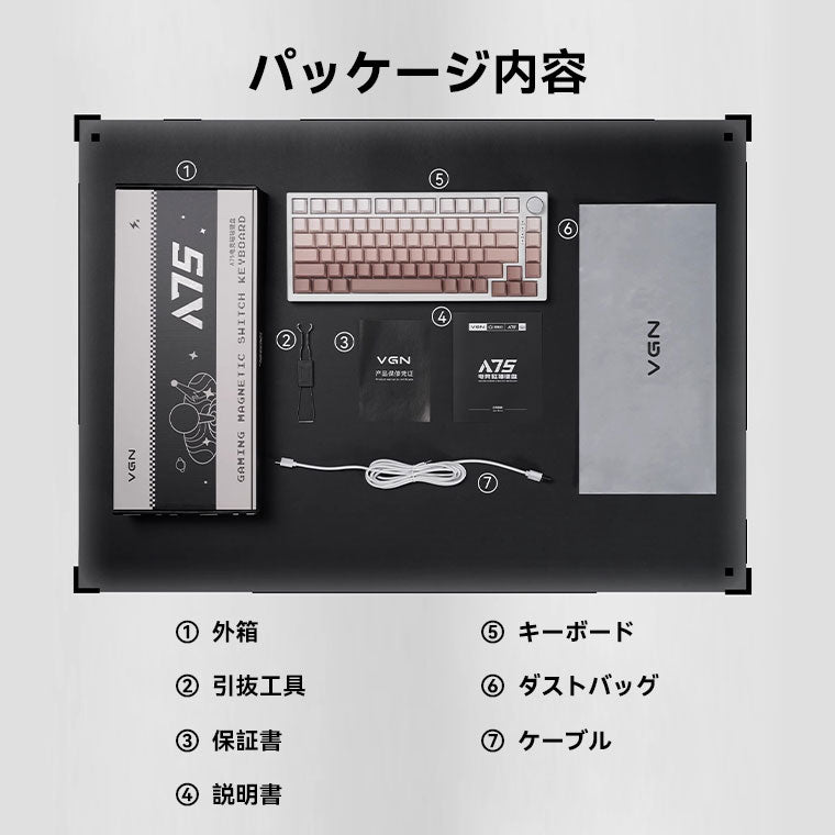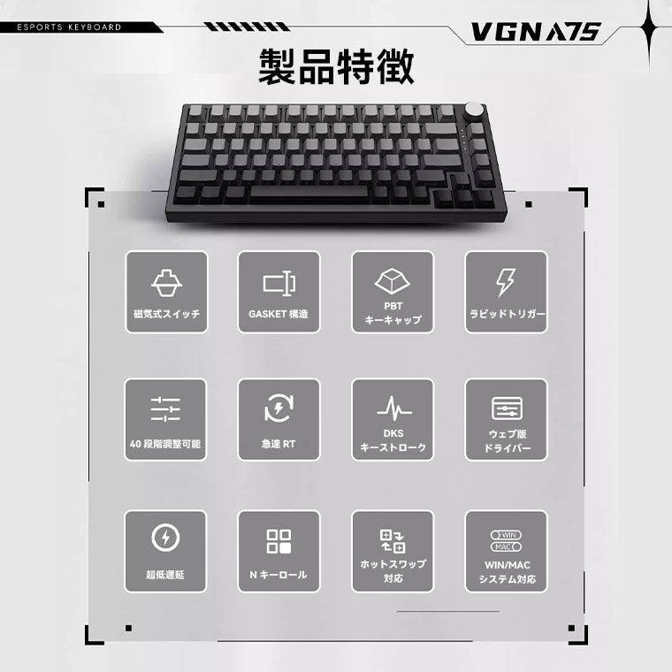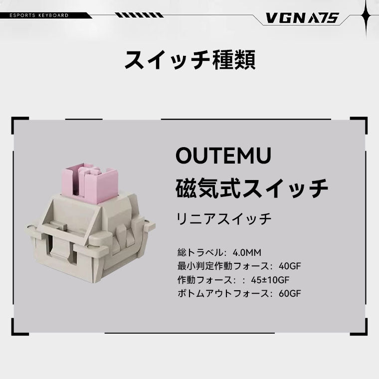 【送料無料】VGN A75 ラピッドトリガー ゲーミングキーボード ガスケットキーボード OUTEMU 磁気スイッチ 75キー Type-Cケーブル ホットスワップ対応 PCB RGBバックライト搭載 OEM PBTキーキャップ