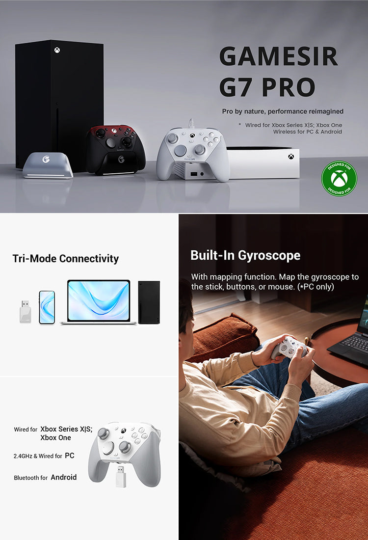 【3日以内発送】GameSir G7 Pro ゲ一ムコントロ一ラ一 コントローラー ワイヤレス プロコン PCコントローラー Switch / PC / Steam / IOS / Android 全対応 ホール効果ジョイスティック ホール効果トリガー スリーモード接続 リニアトリガー 1000Hz