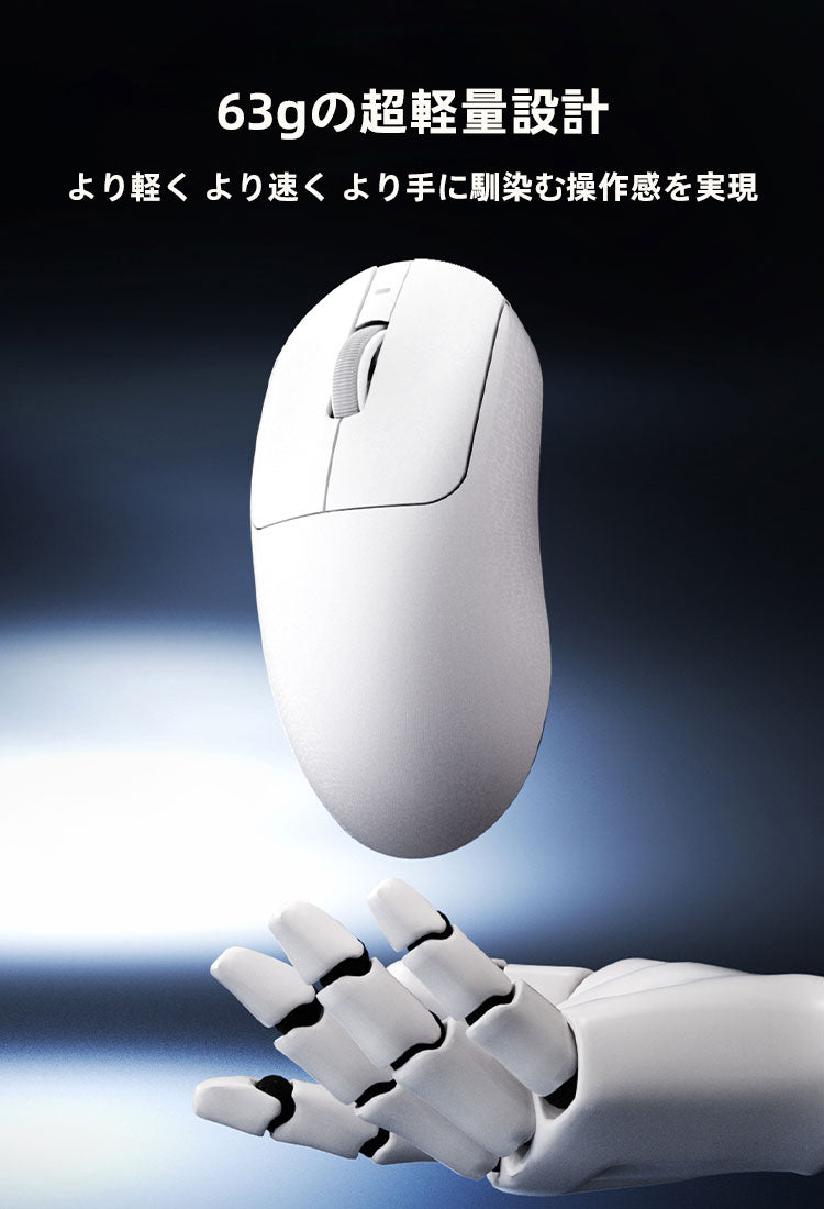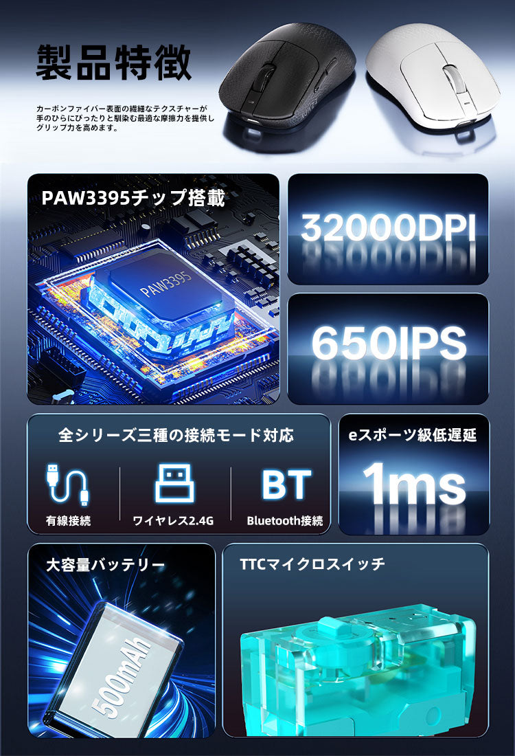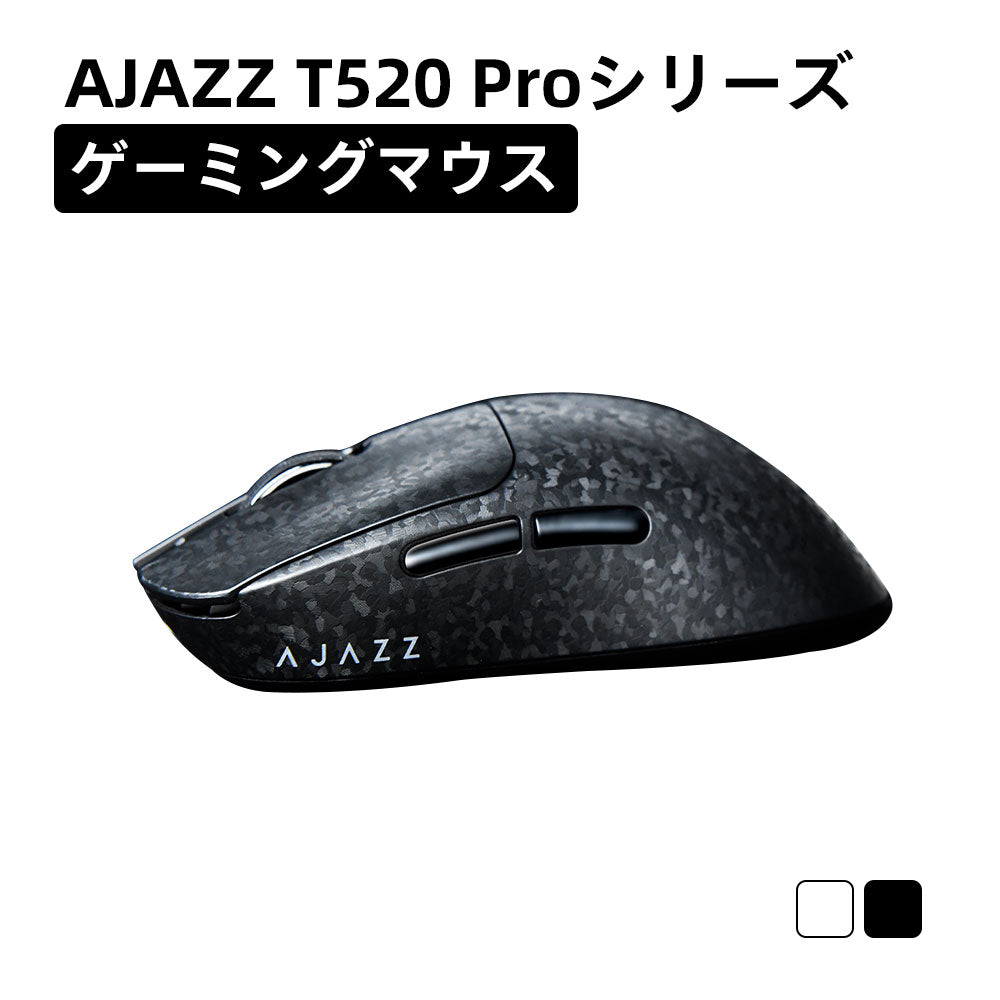 AJAZZ T520 ゲーミングマウス ワイヤレス カーボンファイバーシェル素材 PAW3950 8k対応 無線 超軽量 約58グラム 2.4Ghz/USB-C/Bluetooth接続 バッテリー500mAh ブラック / ホワイト