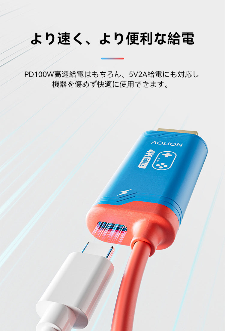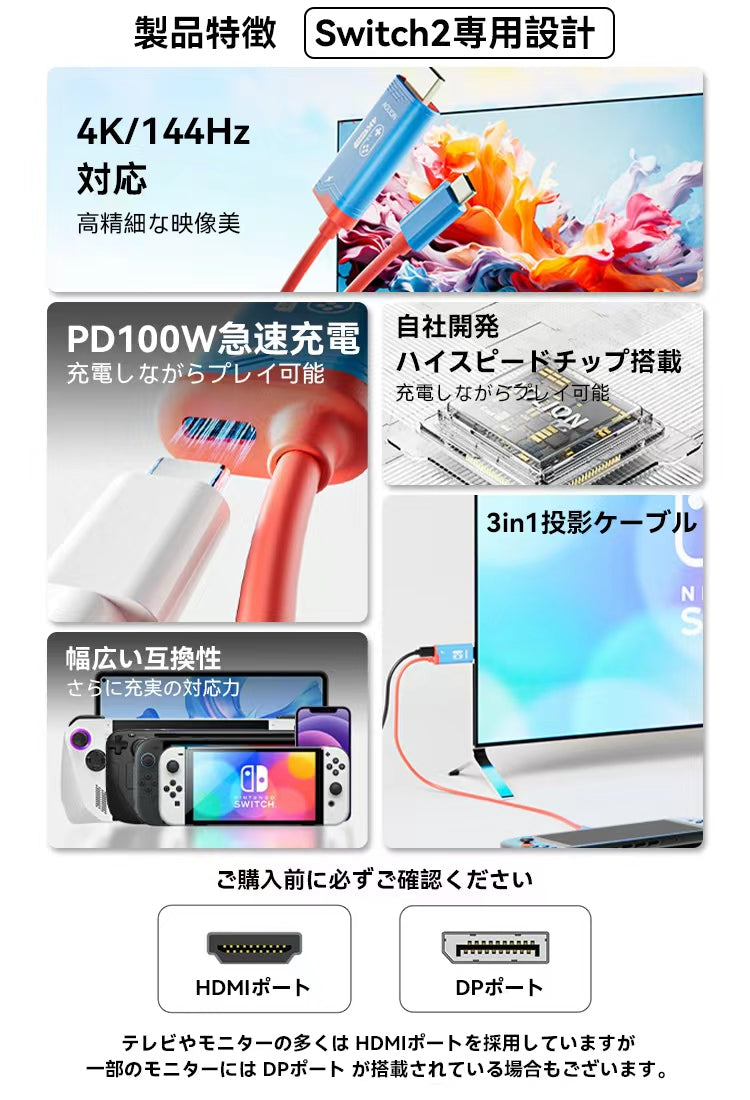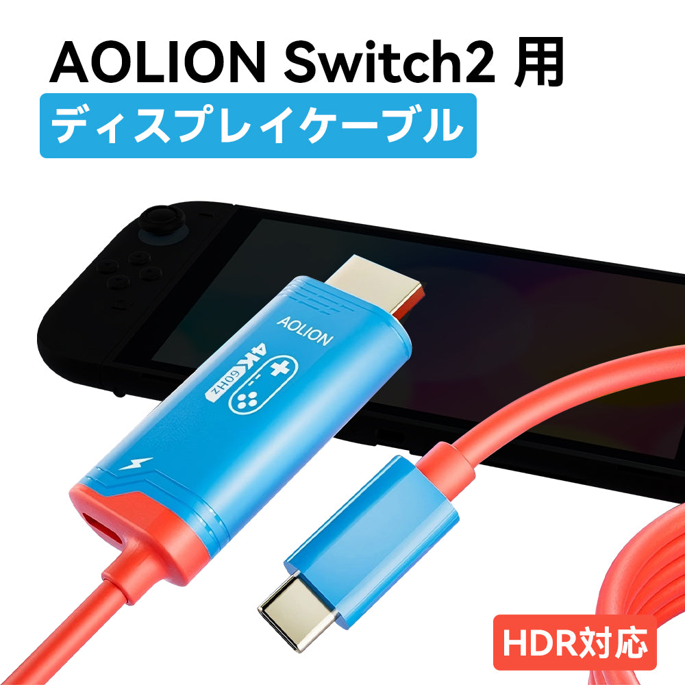 AOLION NS2 用 HDMI ケーブル DP ケーブル 投影ケーブル USB-C 4K 144Hz HDR 対応 PD100W 急速充電 Switch/PC/ノートパソコン/モニター/テレビ出力対応 映像変換ケーブル ブラック ホワイト レッド ブルー 多色展開