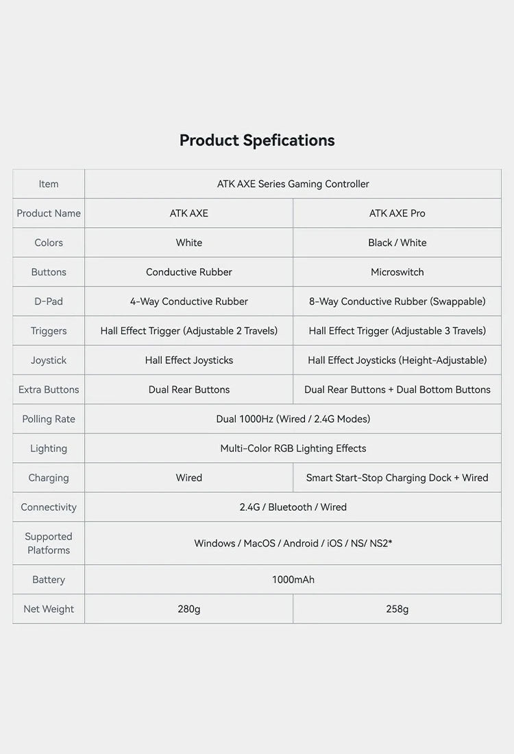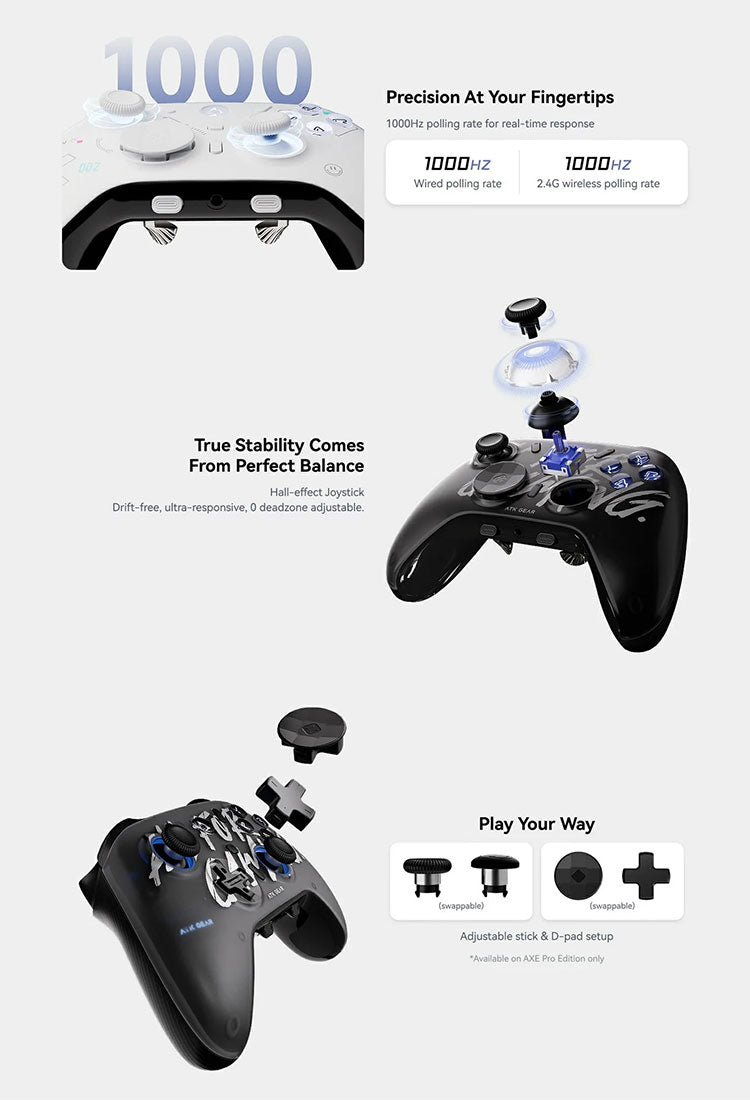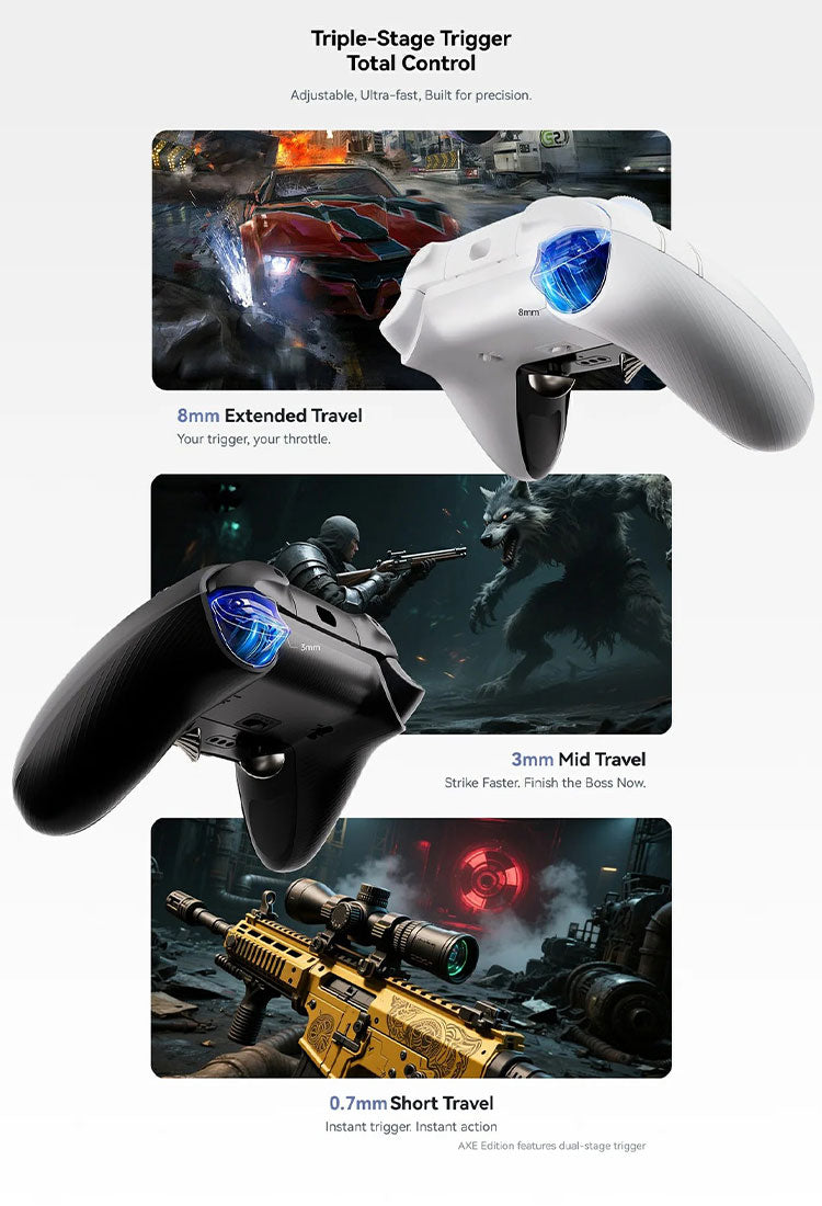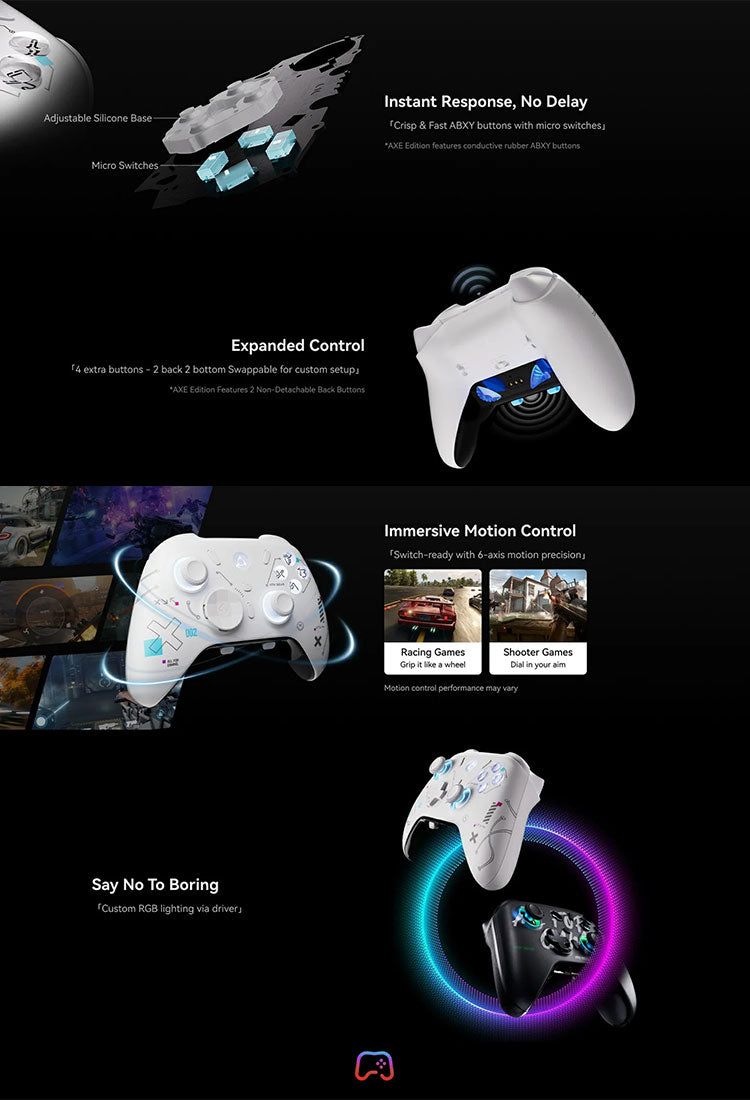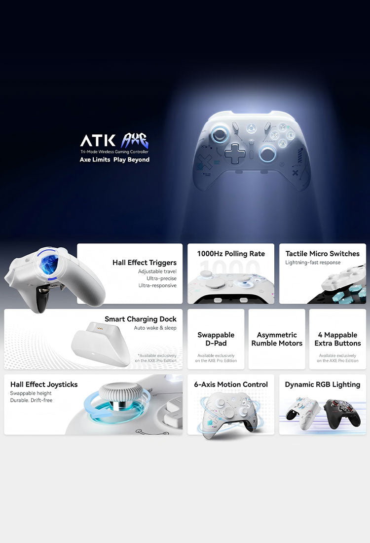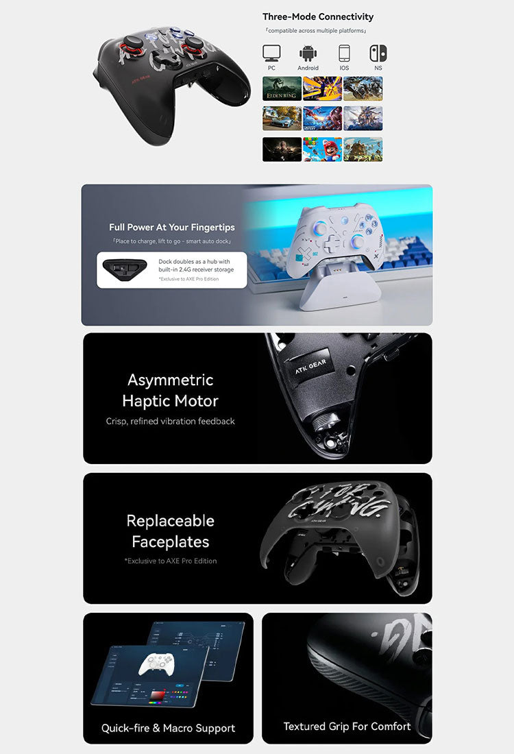 ATK AXE シリーズ コントローラー Nintendo Switch PC Windows Android iOS用 Bluetooth PC ゲームコントローラー カスタマイズ 6軸ジャイロ/振動/ターボ/ウェイクアップ機能付き スティックのカスタマイズ性 PC用ゲームパッド