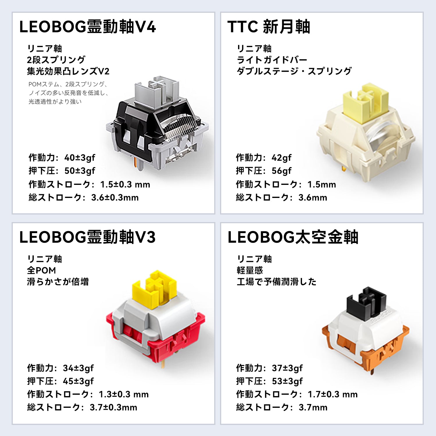 ・ホットスワップ対応キーボードは、ハンダ付けなしでスイッチの交換が可能で、キーボード愛好家にとって非常に便利です。 さらに、F87 ProはカスタマイズされたAULA グレイウッド V3スイッチを搭載し、優れた触覚フィードバックと耐久性を実現しています。 |