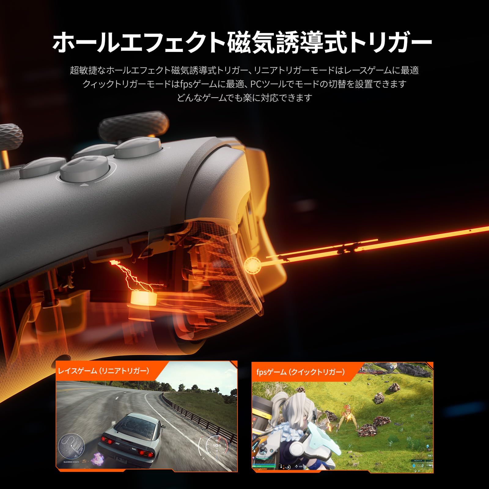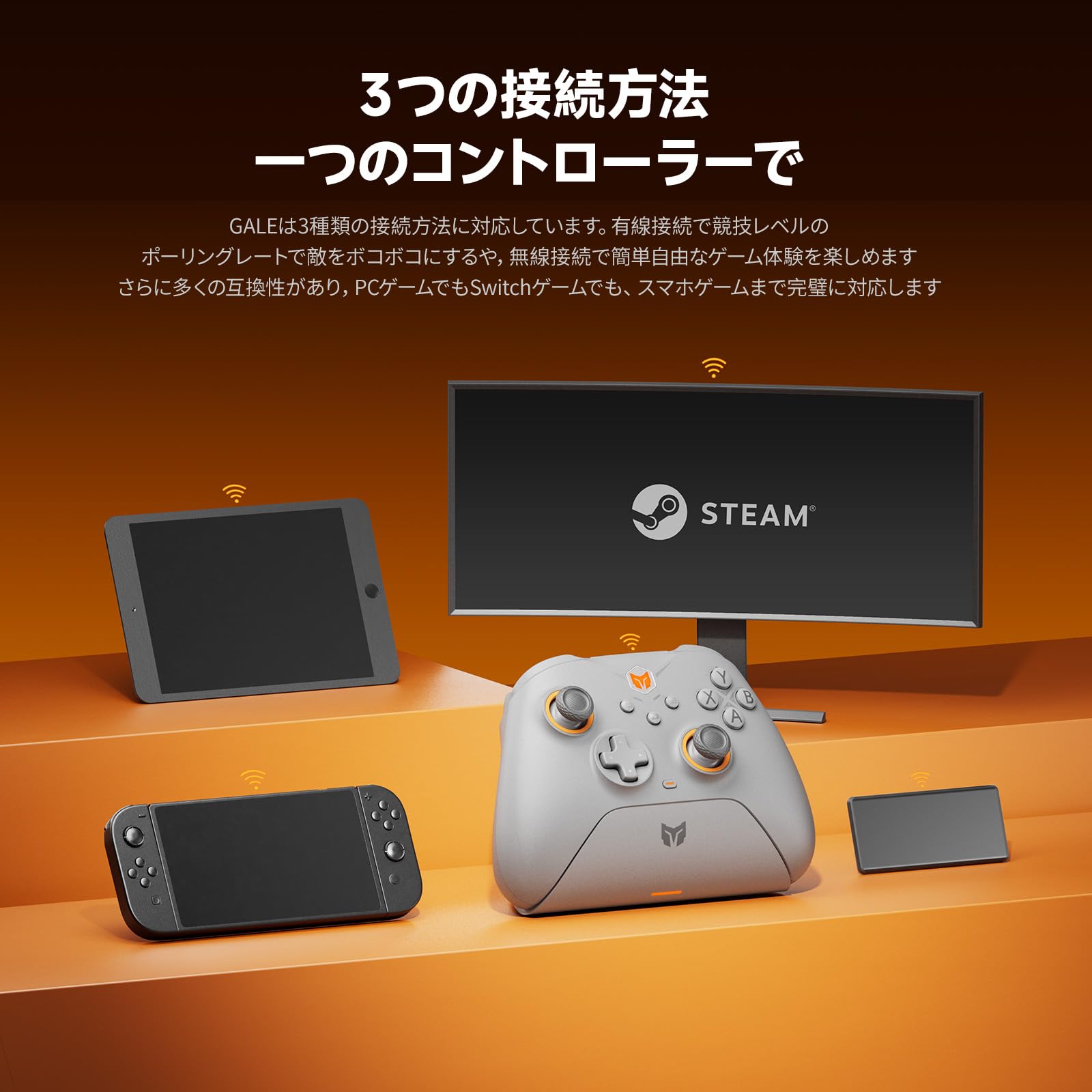 BIGBIG WON Gale-Hall コントローラー 2.4Gワイヤレス ホール効果 トリガー スティック PC 充電ベース付き Bluetooth ゲームパッド PCアプリの設定制御 4つのカスタムボタン Switch/Switch Lite/Switch OLED/Windows/Android/IOSに対応 (ブラック / ホワイト)