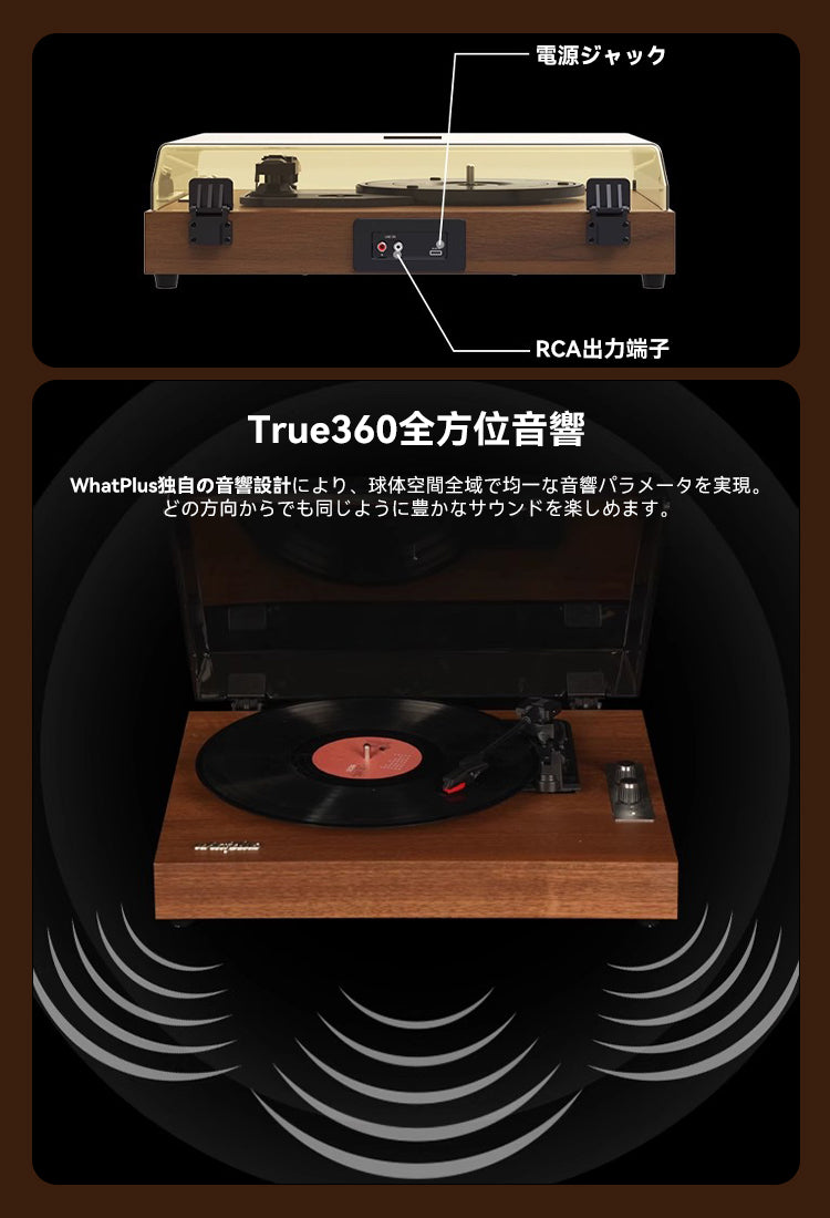 CDプレーヤー WHATPLUS From 1900 シリーズ レコードプレーヤー Bluetooth5.0 レトロ ステレオスピーカー内蔵 CDプレイヤー CDラジカセ 卓上置き リピート ポータブル 睡眠モード 語学学習 音楽鑑賞 子供教育 ストレス解消 全方位音響