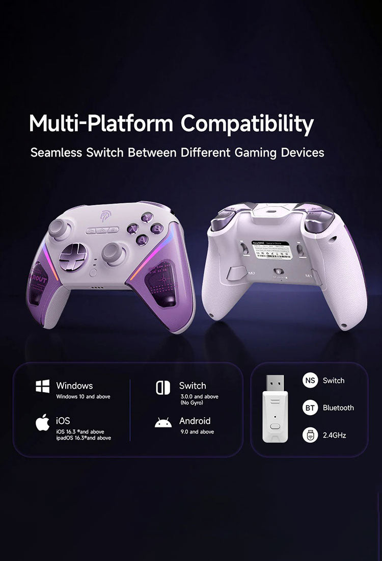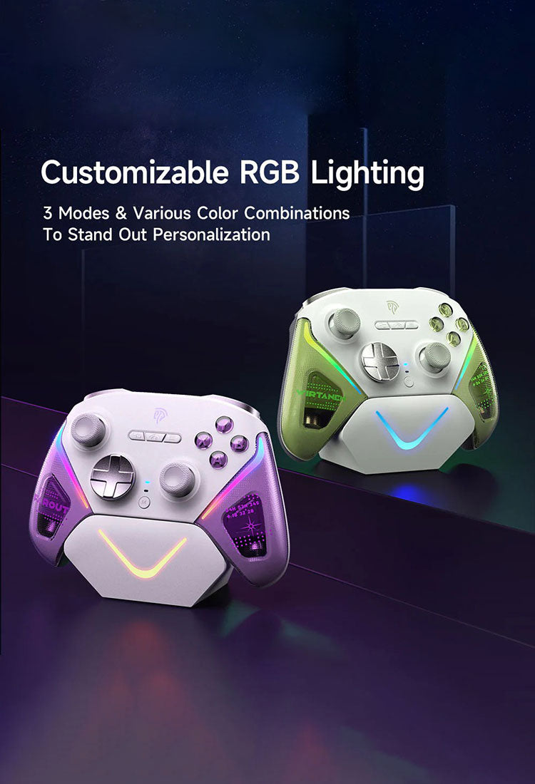 EasySMX D10 ワイヤレス PC コントローラー D10 ゲーミングコントローラー ゲームパッド グリーン パープル ブラック RGBライト ライトモード スタンド付 ホールジョイスティック ホールトリガー 1000 mAh 充電式バッテリー PC / Switch 2 / モバイル対応