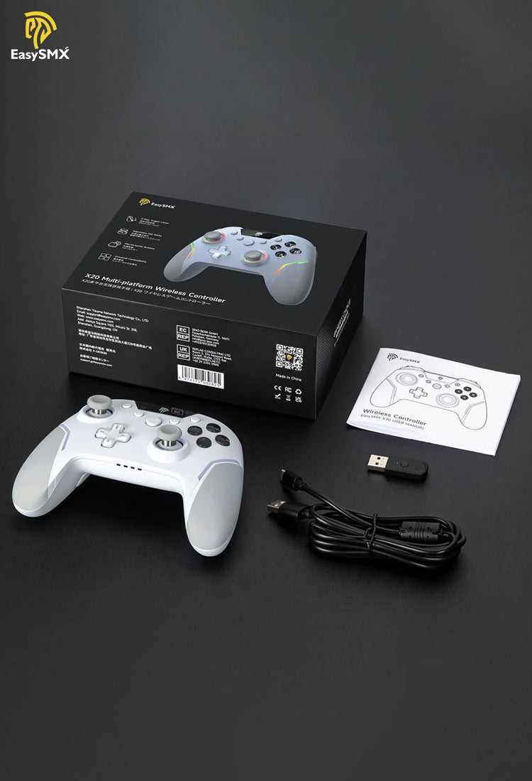 EasySMX X20 ワイヤレス PC コントローラー X20 ゲーミングコントローラー ゲームパッド グリーン パープル ブラック RGBライト ライトモード スタンド付 ホールジョイスティック ホールトリガー 1000 mAh 充電式バッテリー PC / Switch 2 / モバイル対応