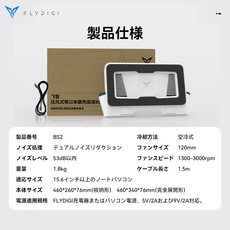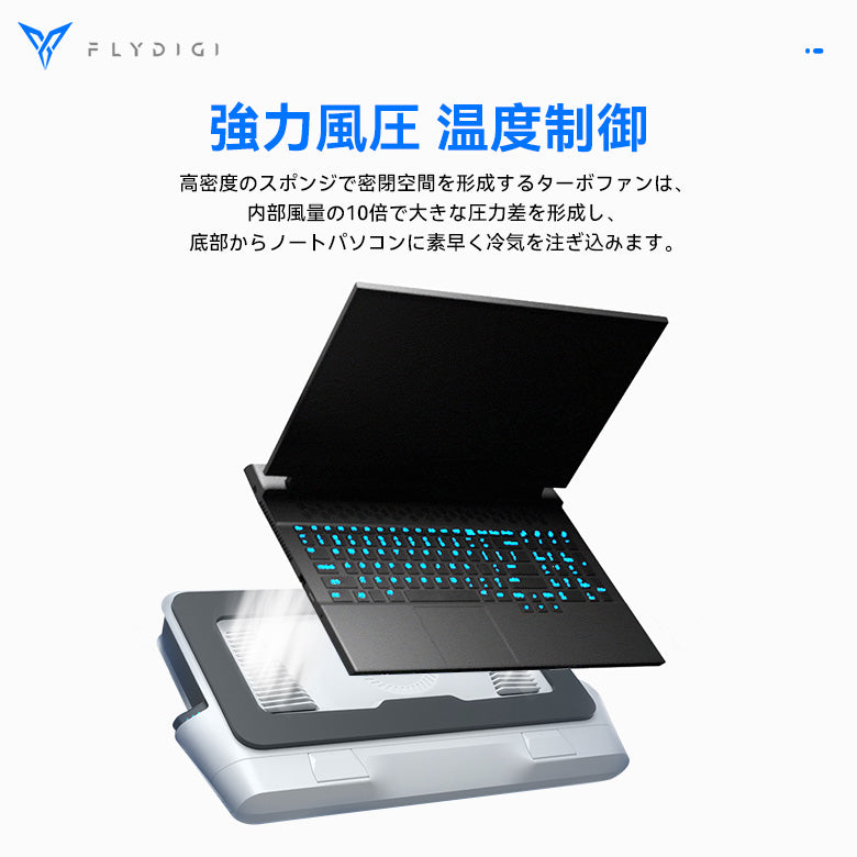 ・FLYDIGI BS2 冷却台はノートパソコンを最速で冷却し、同時にノートパソコンを傷つけません。 高密度スポンジと組み合わせることで、密閉された空間を形成し、空気取り入れ口の10倍の大きな圧力差を生み出します。またはCPUとGPUに最適な温度を維持するために(ノートパソコンの現在の熱負荷に基づいて)ファン速度を自動的に調整し、激しい使用時に効果的な冷却を保証します。 |