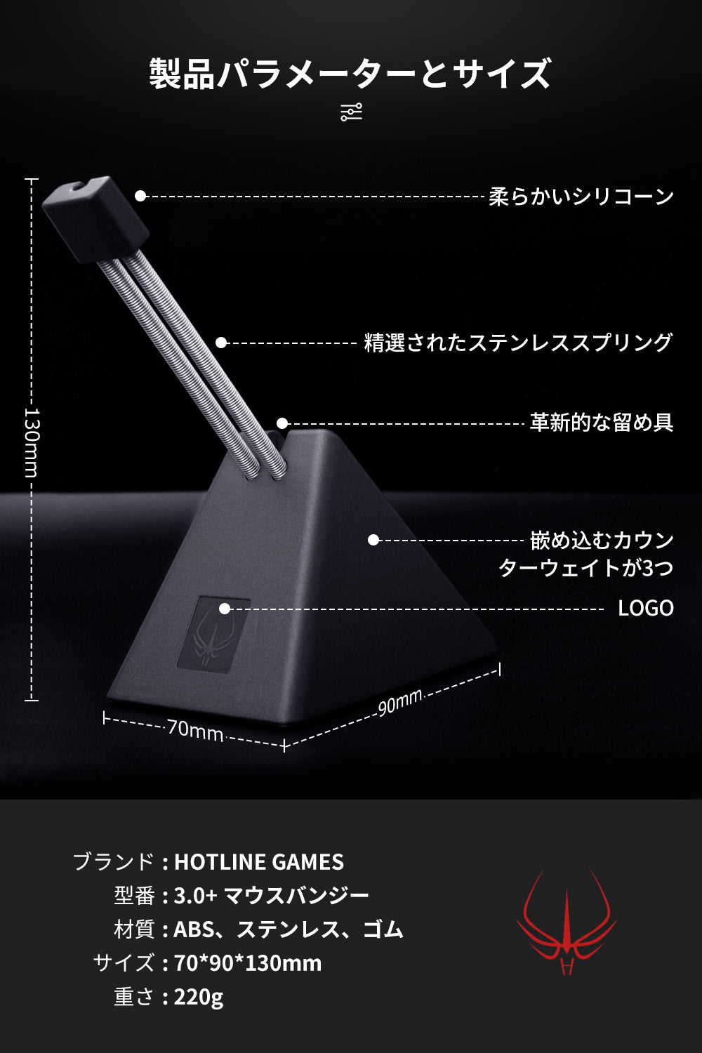 Hotline games 新3.0+ マウスバンジー ゲーミング マウスコード マネジメント バンジー システム マウスコードホルダー 太めケーブル対応【 日本正規代理店保証品 】 (新3.0+ ブラック)
