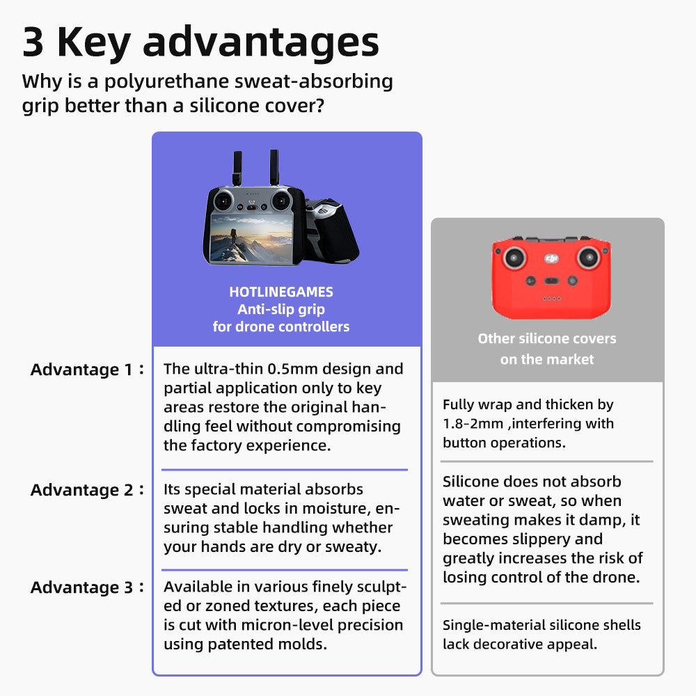 Hotline Games DJI RC シリーズ 用 コントローラーグリップ 滑り止め グリップシール アンチスリップテープ コントローラー アクセサリー 滑り止め グリップ テープ 【 グリップ力強化/吸汗力強 / 超薄0.6mm / 安全無臭 】【 日本正規代理店保証品 】