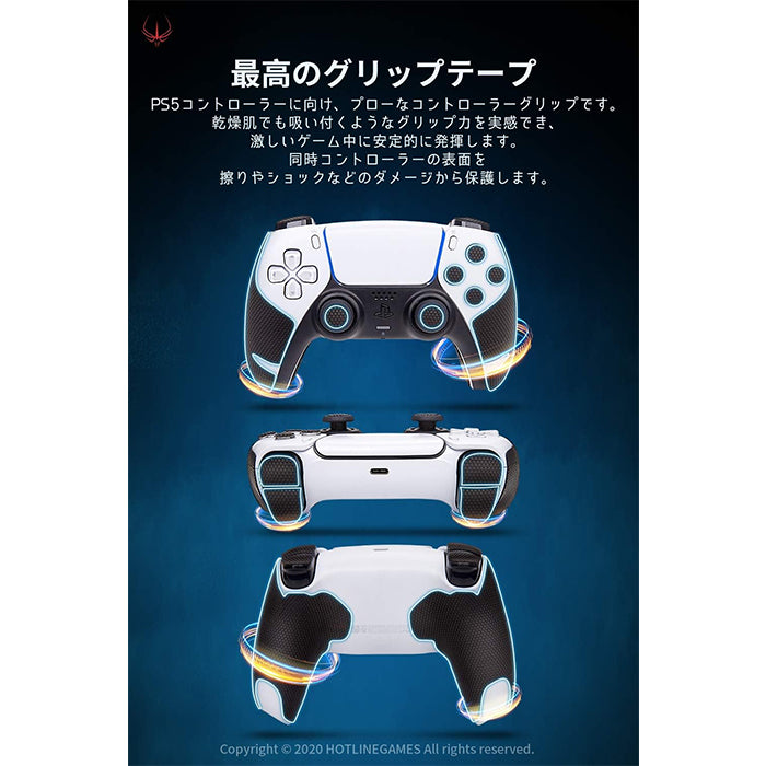 Hotline Games PS5専用 コントローラーグリップ 滑り止めグリップカバー 超薄0.6mm 吸汗力抜群 PlayStation 5 DualSense プレステ5 ケース プレイステーション5 用 汚れ防止 保護 アンチスリップテープ プロテクター グリップ力強化 安全無臭 【 日本正規代理店保証品 】