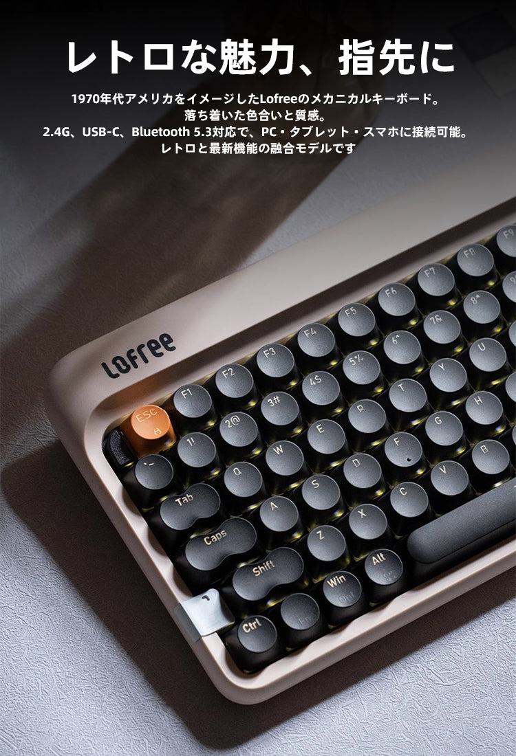 Lofree 1970s シリーズ メカニカルキーボード Mechanical Keyboard ロフリー レトロデザイン おしゃれ デスクワーク 打ち心地快適 LEDバックライト付き 仕事用 在宅勤務 快適 リニア 有線 無線 2.4G BLUETOOTH 対応