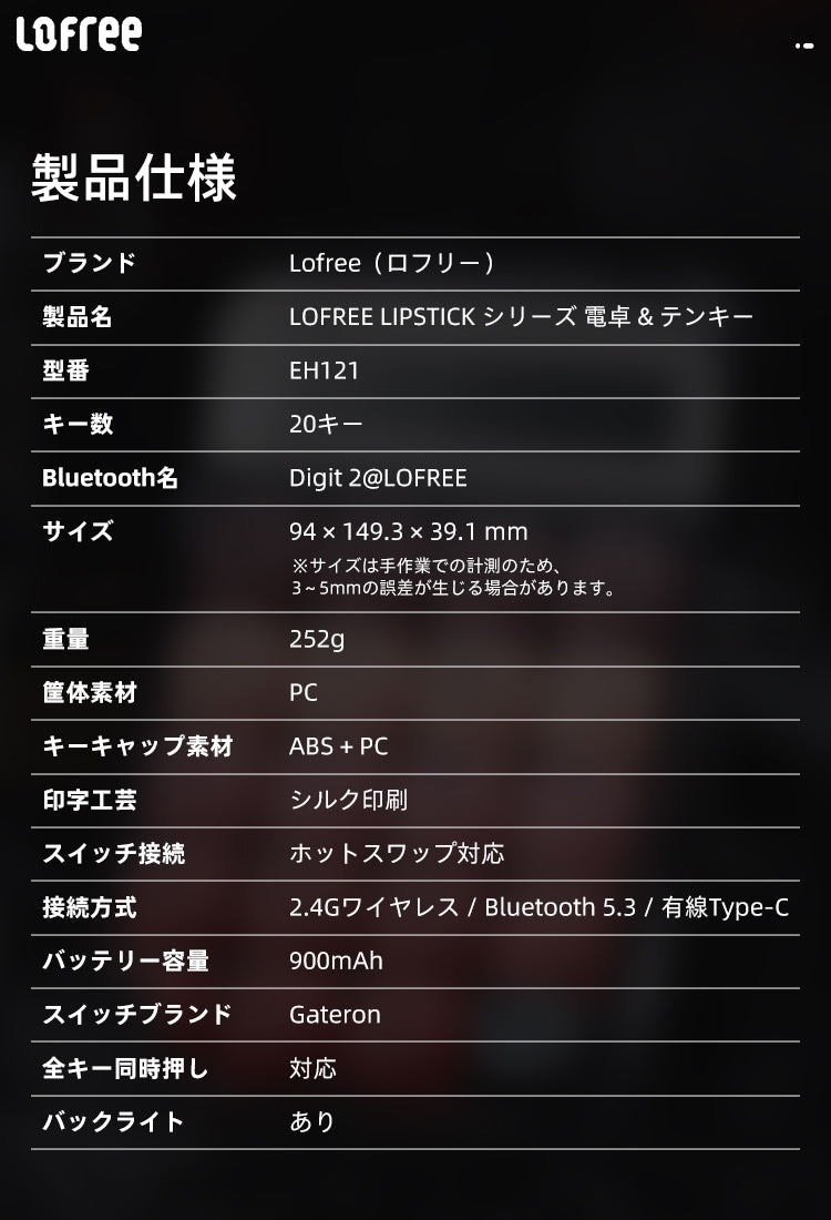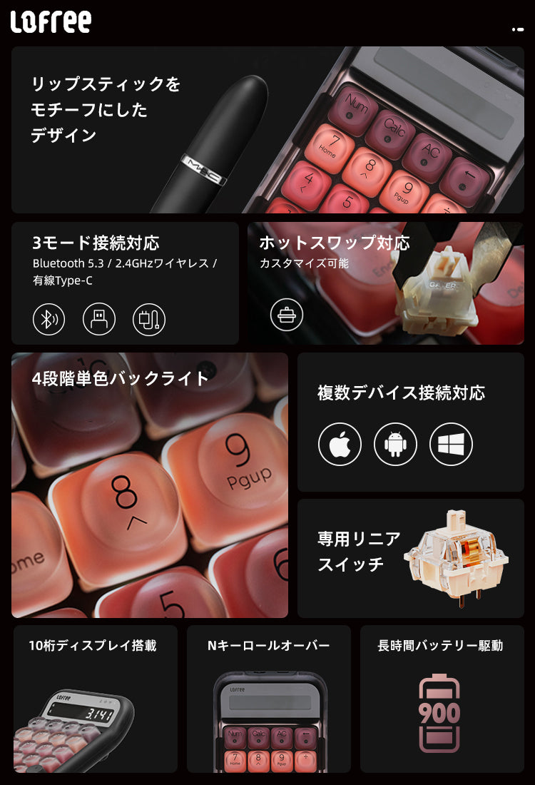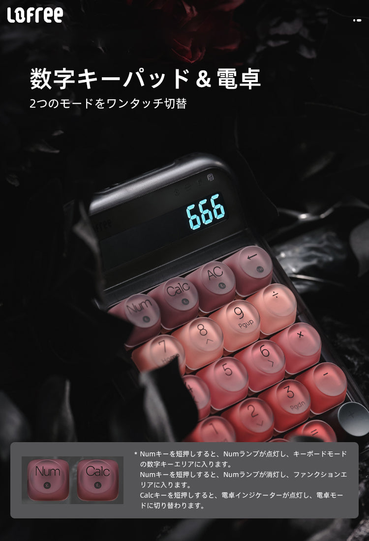 Lofree Lipstick シリーズ ロフリー 電卓 + テンキー ナンバーパッド 数字 テンキーパッド プログラミング マクロ ノブ 無線 機械式 メカニカルキーボード キーパッド 20キー メタルキーキャップ タイピング 仕事用