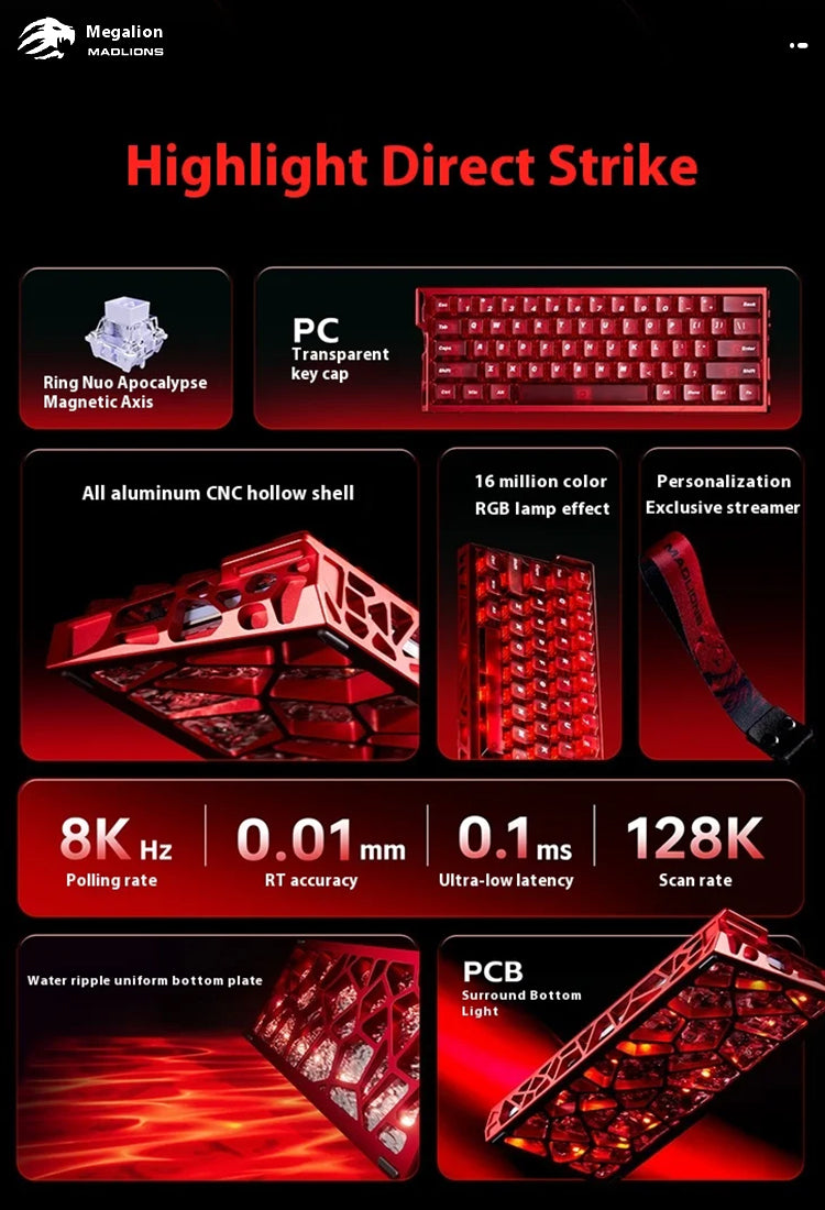 MADLION MAD LIGHT 60 HE キーボード ラピッドトリガー RT ラピトリ マグネティックスイッチ フルアルミ製 RGB アルミニウム 超低遅延 磁気スイッチ ゲーミングキーボード ケーブル 有線接続 磁気式 スイッチ 8K ポーリングレート 0.08ms 低遅延 RT精度 0デッドゾーン
