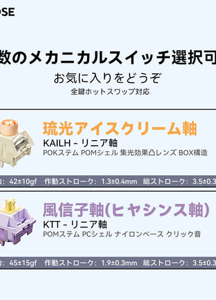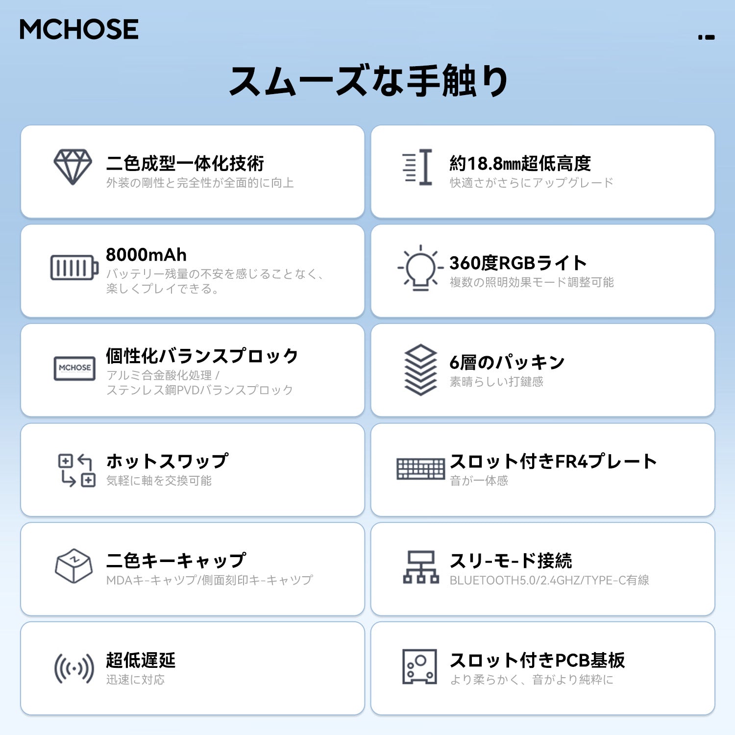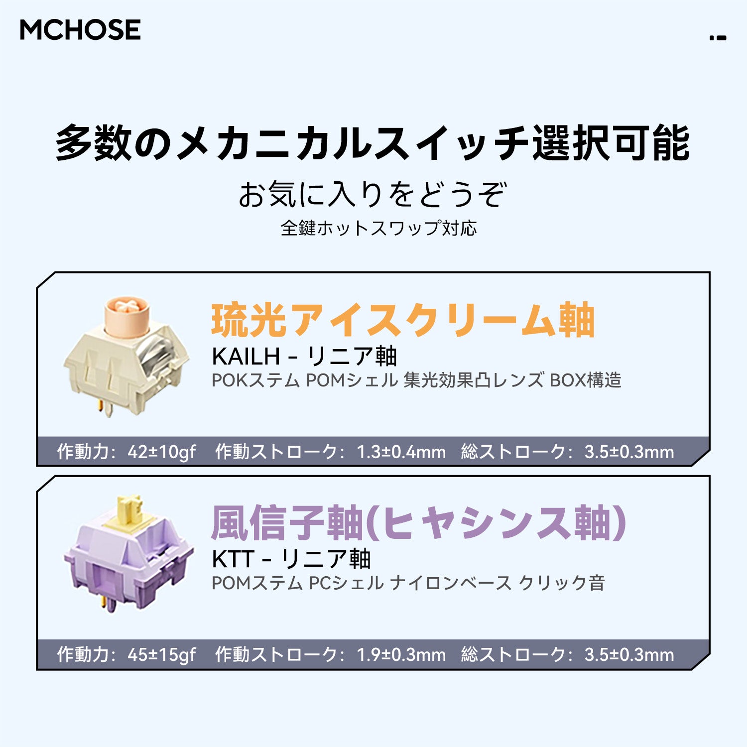 MCHOSE K99 V2 ゲーミングキーボード ガスケットメカニカルキーボード 99キー Bluetooth5.0/2.4Ghz/Type-Cケーブル ホットスワップ対応 6層パッド付き 6000mAhバッテリー PCB RGBバックライト 琉光アイスクリーム軸 夜蛍軸 雲豹軸 風信子軸 ( ヒヤシンス軸 )
