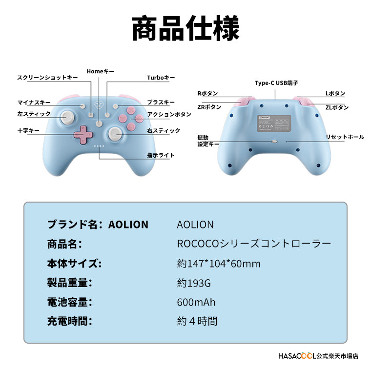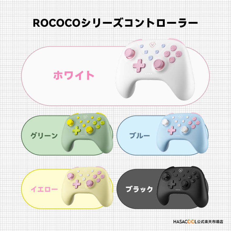 Nintendo Switch Pro用 コントローラー ワイヤレス ゲームパッド Switchコントローラー PC Windows Android iOS用 ROCOCO シリーズ Bluetooth5.3 / 2.4Ghz / Type-Cケーブル 振動 / ターボ / マクロ 多色選択可能