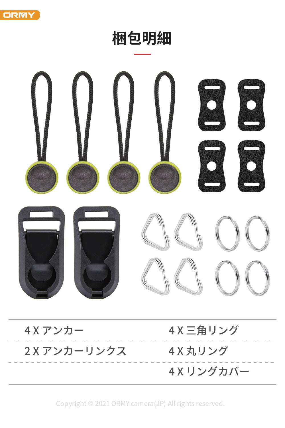 ・前代より強い丸リングと三角リング付きで、方型・丸型接続穴付きのカメラと双眼鏡とドローンなどをほぼ全て対応できます、リングカバー付き、リングでカメラ本体の傷つきを防ぎます。* アンカーリンクスを直接に装着可能のカメラ機種はリングを使わないことをおすすめです |