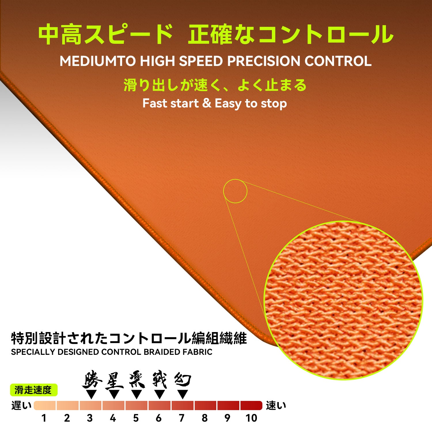 ・高い糸密度の表面により、軽く速い滑りでありながら止めやすく、縦横の滑りが同じ滑り心地で、プレーヤーに安定かつスムーズで快適な滑走体験を提供します。敵を素早く狙って撃ち、特に FPS や MOBA プレーヤーに適しています。デザイナーが絵を描いたり、テーレワーク、在宅勤務、勤務オフィス?にも非常に良い選択です。 |