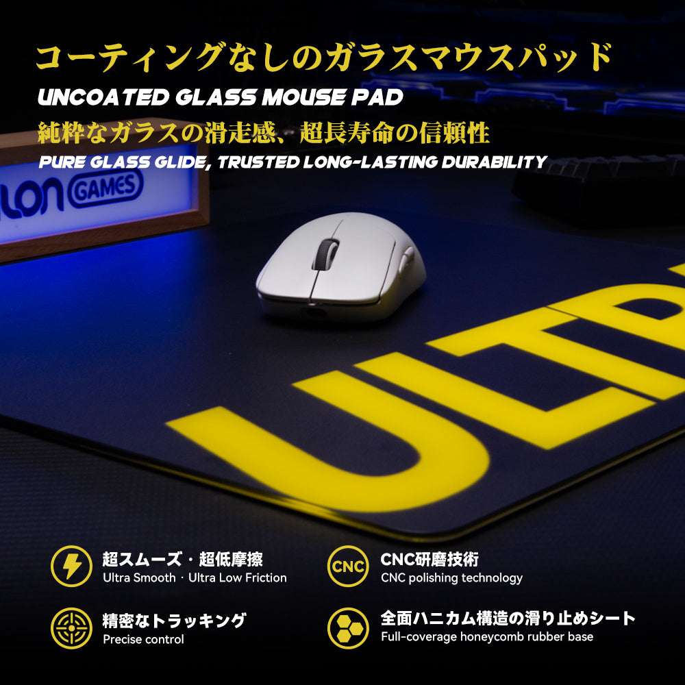 ・ガラス表面に微細なマイクロエッチング加工を施すことで、極めて低い摩擦係数を実現します。マウスの動きを邪魔しない超スムーズな滑走感と、繊細なコントロール性能を両立し、FPSやRTSなど正確なエイムを求めるゲームシーンで、最高のパフォーマンスを発揮します。 |