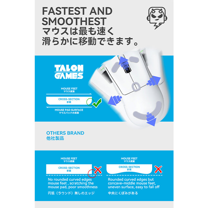 TALONGAMES マウスソール Razer Deathadder V3 Pro 用 交換用 2セット入り プレミアム グライド マウススケート マウスフィート 高耐久 超低摩擦 Super Smooth Glide【 日本正規代理店保証品 】(TA22)