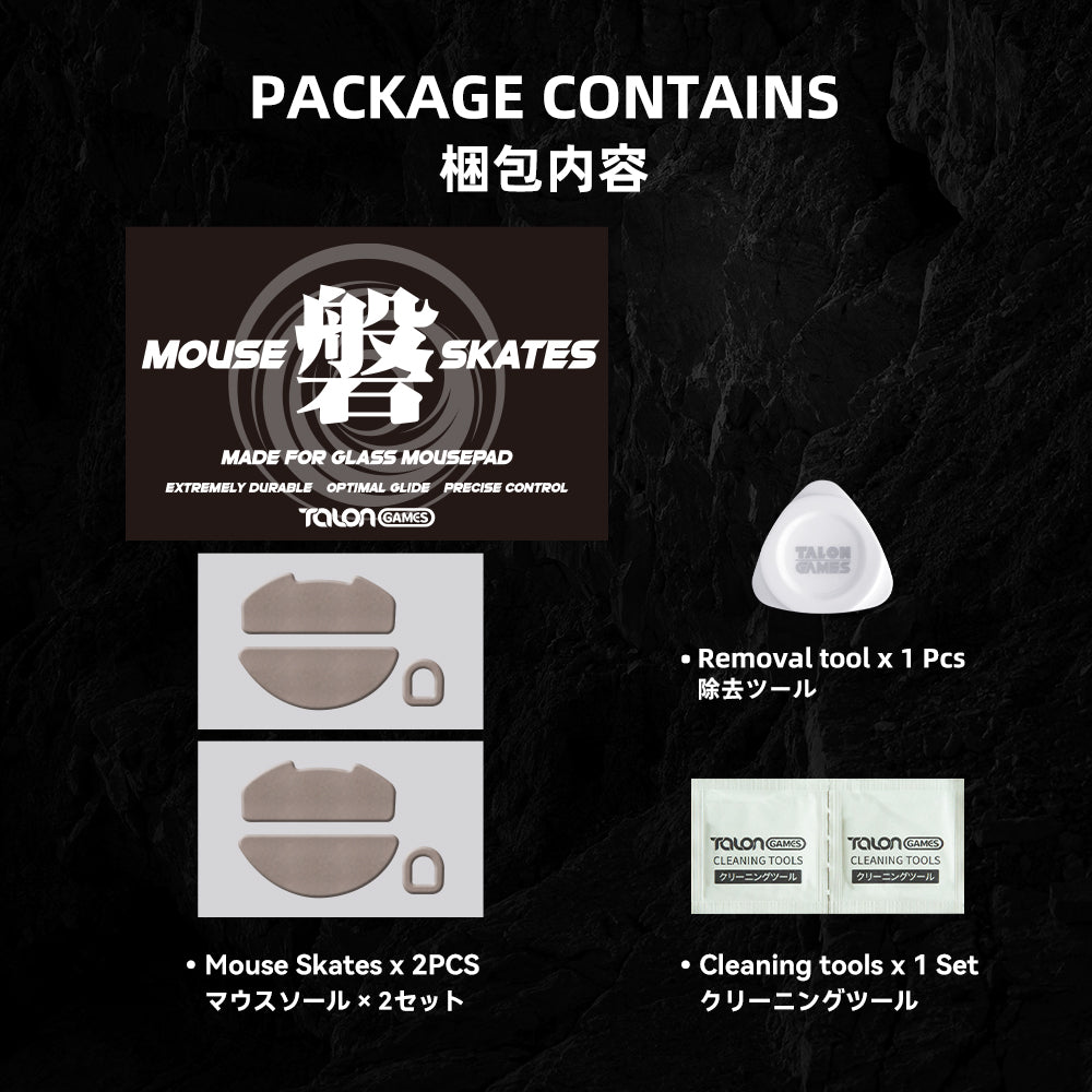 1.本製品はガラス製マウスパッド専用のため、布製マウスパッドでは使用しないでください。 2.マウス本体は含まれておりません。 3.一部マウスは元ソールが2層構造になっている場合があります。使用前に、ネジ穴が見えるまで元ソールを完全に剥がしてください。残っているとセンサーに悪影響を及ぼす可能性があります。 |