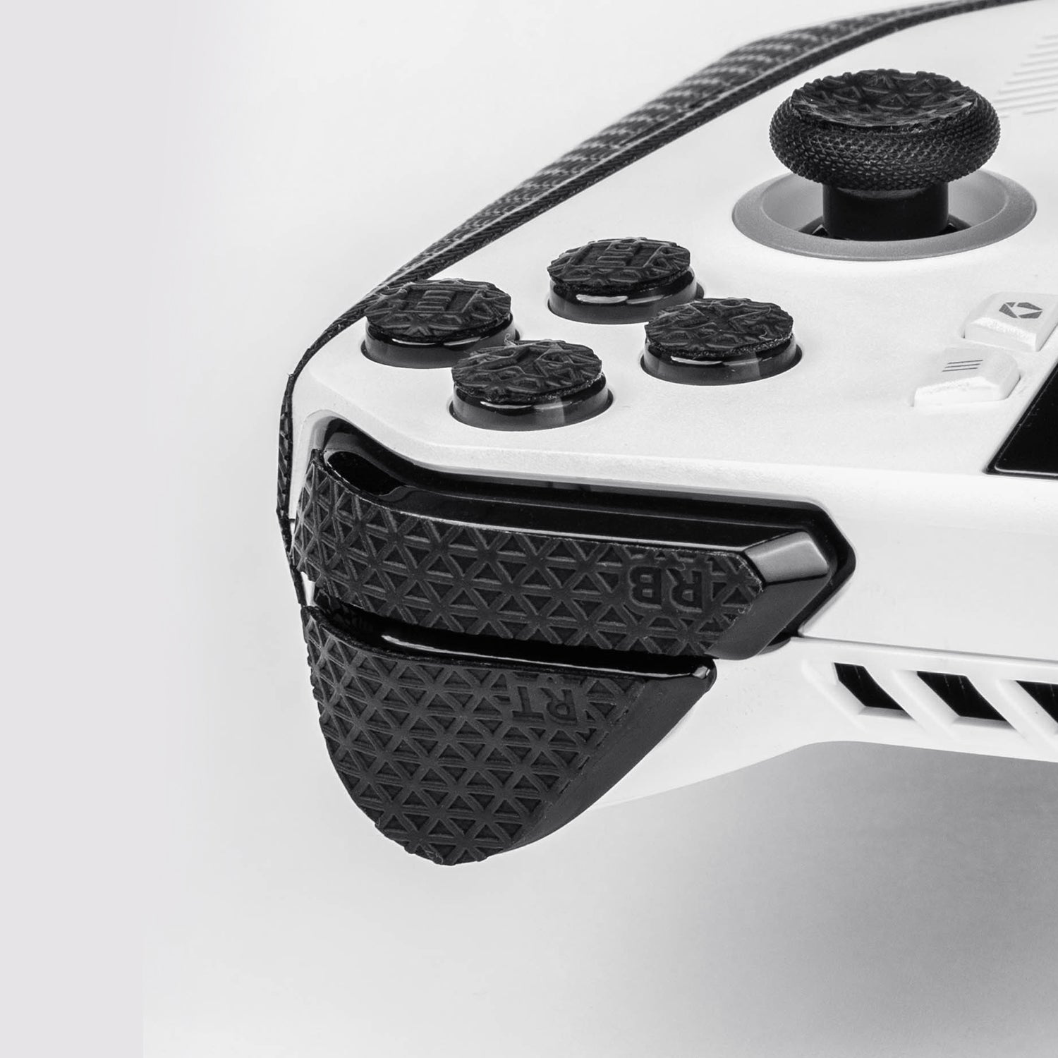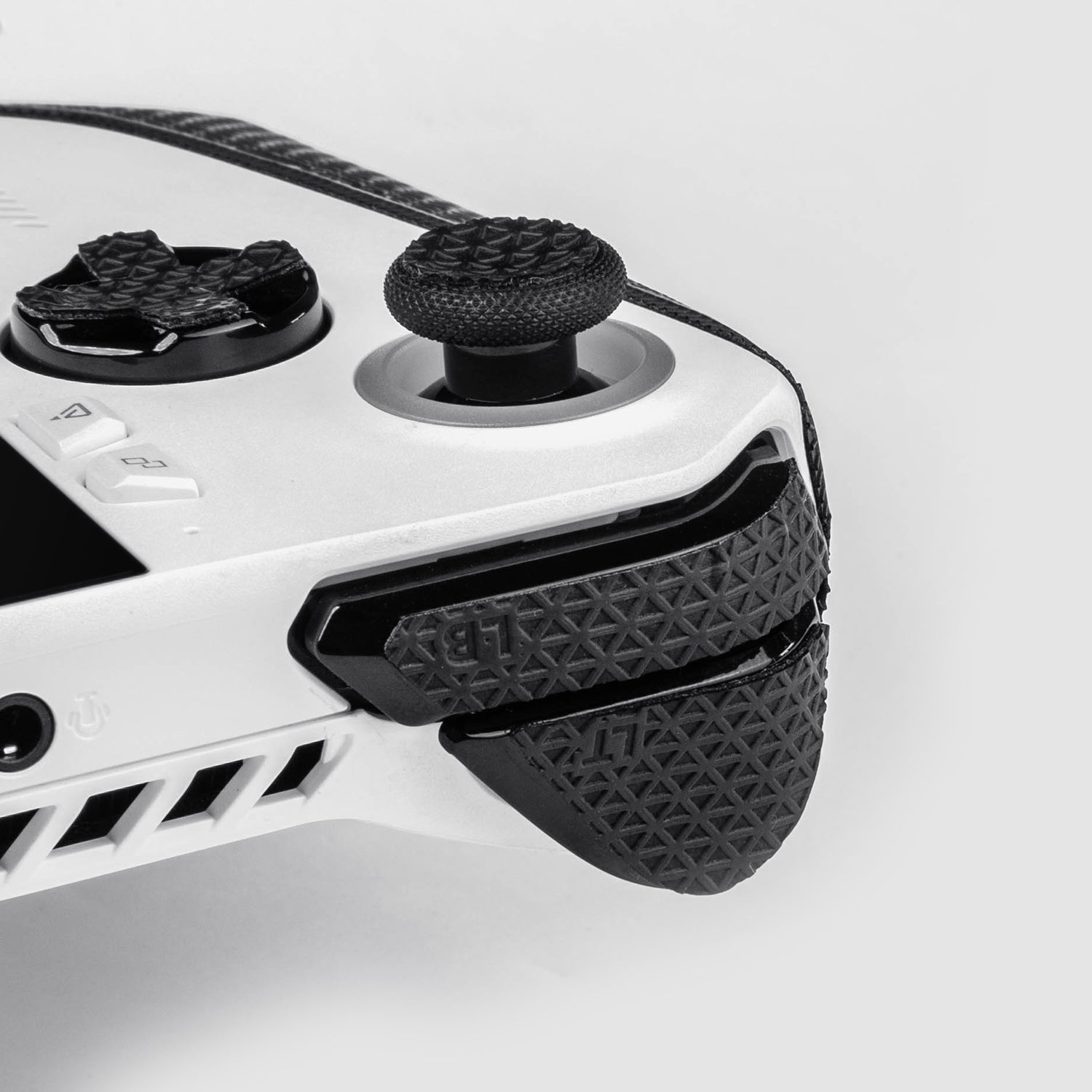 ・多数プレーヤーからコントローラーの使用習慣データを収集します。グリップ力とタッチポイントに最適化され、専用のテクスチャーを設計します。滑り防止の同時、操作に邪魔なく絶妙なバランスを達成します。最薄部分はわずか0.21mmの厚さ(平均厚さ0.45mm)で、コントローラー本来の握り心地を最大限に保持します。※ |